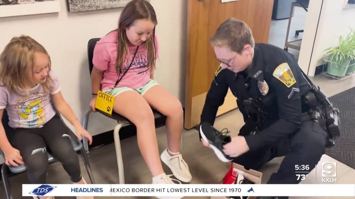 On Wednesday, Helena Police Department school resource officers delivered three pairs of new sneakers to students at Broadwater Elementary School.